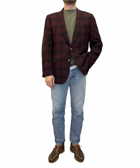 Blazer giacca a quadri bordeaux americana vintage taglia 48