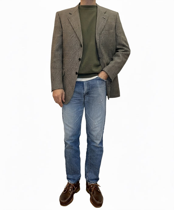 Blazer Vintage 3 Bottoni in Micro Pied de Poule di Lana taglia 50