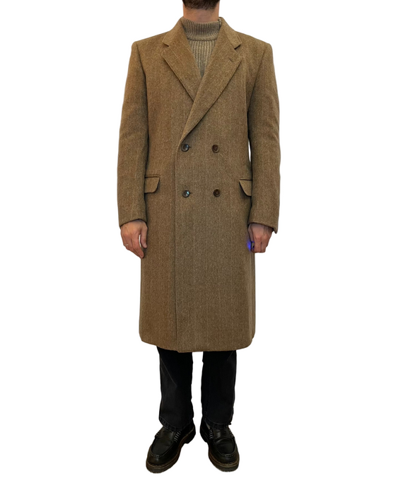 Cappotto doppiopetto vintage spinato lana e mohair taglia 50
