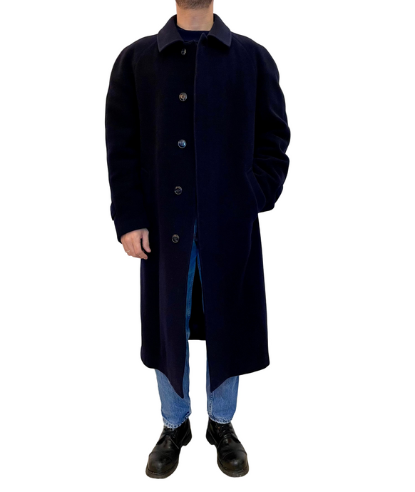 Cappotto blu lana e cashmere manica raglan vintage taglia 52