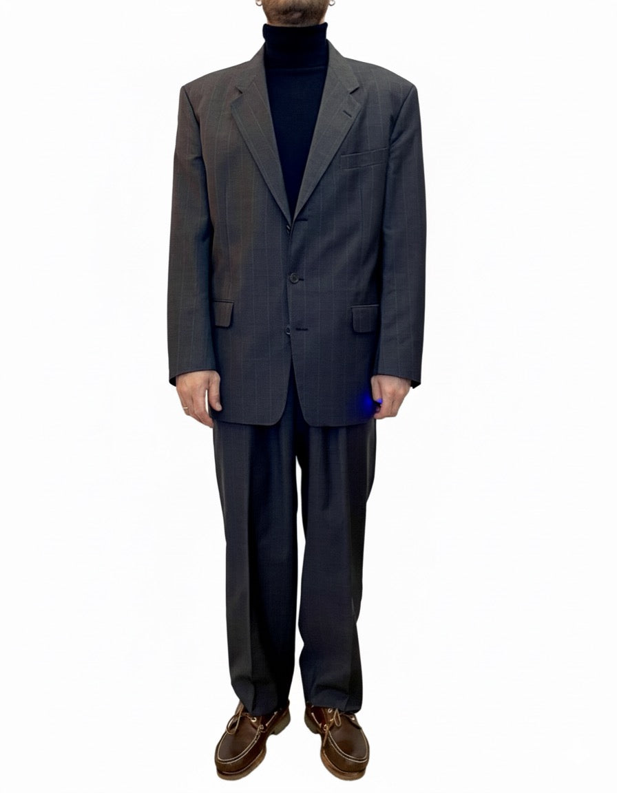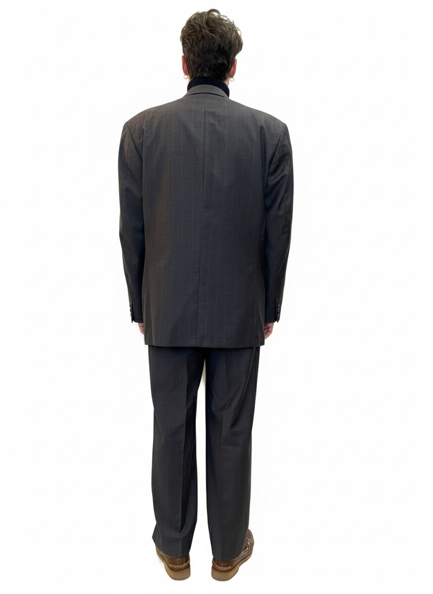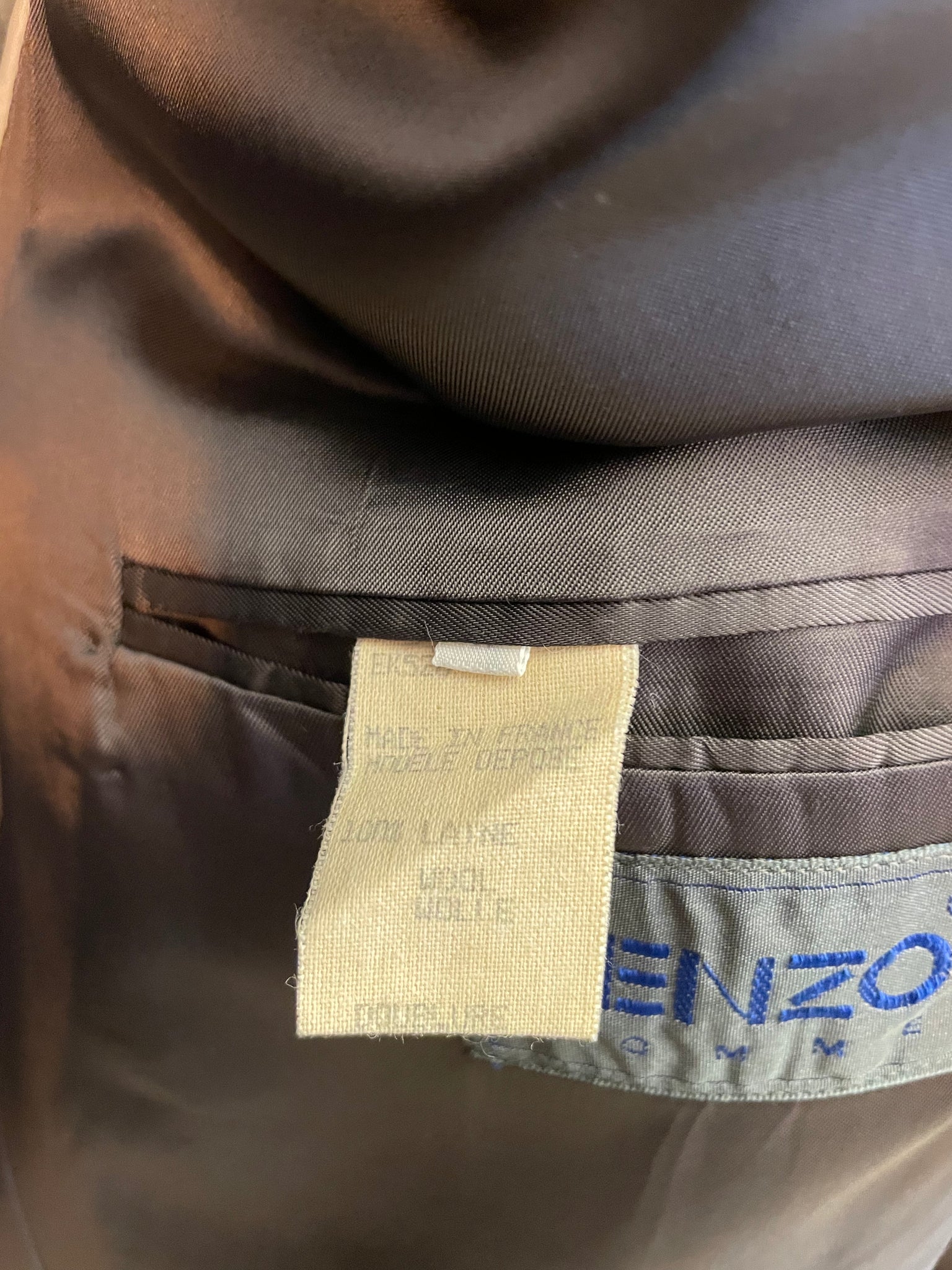 Questo completo vintage Kenzo Paris è un vero pezzo da collezione che rappresenta l'apice della moda francese degli anni '80-'90. Made in France in 100% lana pura, questo completo grigio incarna la visione unica di Kenzo Takada: sartoria impeccabile giapponese incontra l'eleganza parigina. Un capo raro che combina lusso discreto con una storia affascinante.