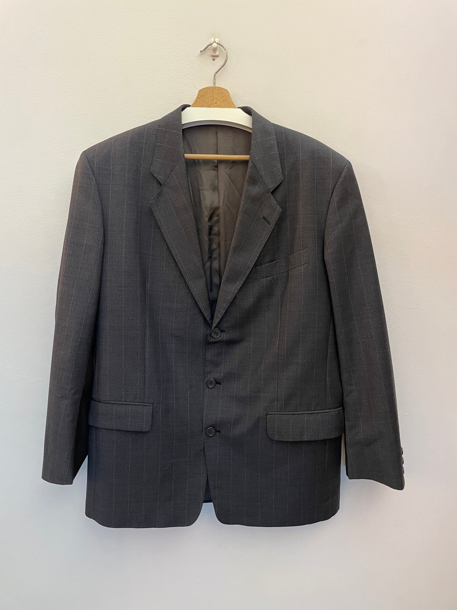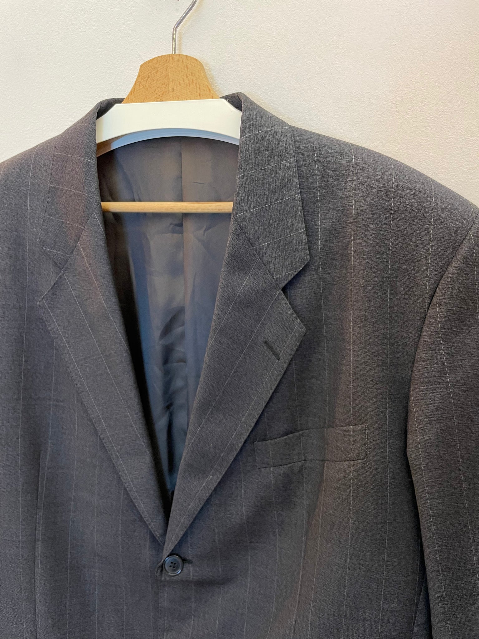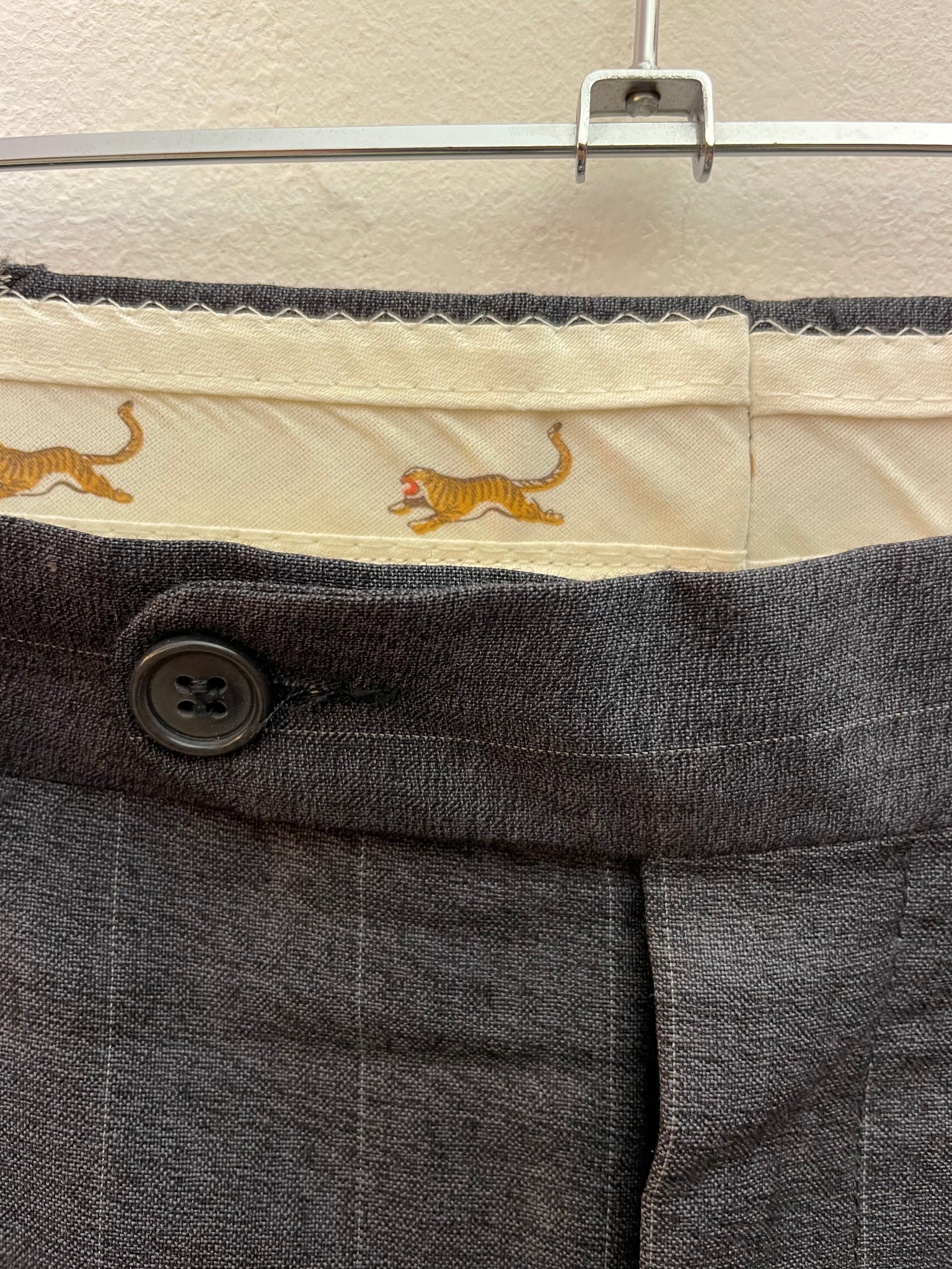 Questo completo vintage Kenzo Paris è un vero pezzo da collezione che rappresenta l'apice della moda francese degli anni '80-'90. Made in France in 100% lana pura, questo completo grigio incarna la visione unica di Kenzo Takada: sartoria impeccabile giapponese incontra l'eleganza parigina. Un capo raro che combina lusso discreto con una storia affascinante.