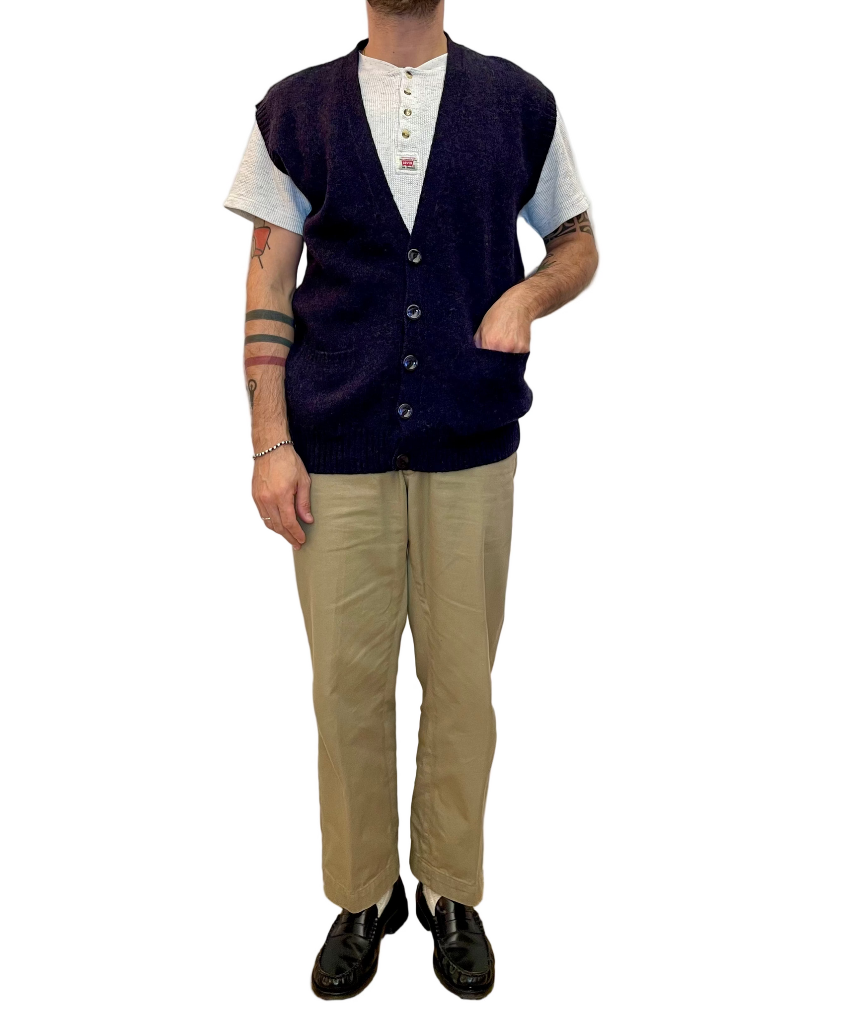 Sei alla ricerca di quel tocco di carattere che solo i capi con una storia possono dare? Dimentica le mode passeggere. Questo gilet vintage in pura lana non è solo un indumento, è una dichiarazione di stile senza tempo, pronto a completare i tuoi look autunnali e invernali.