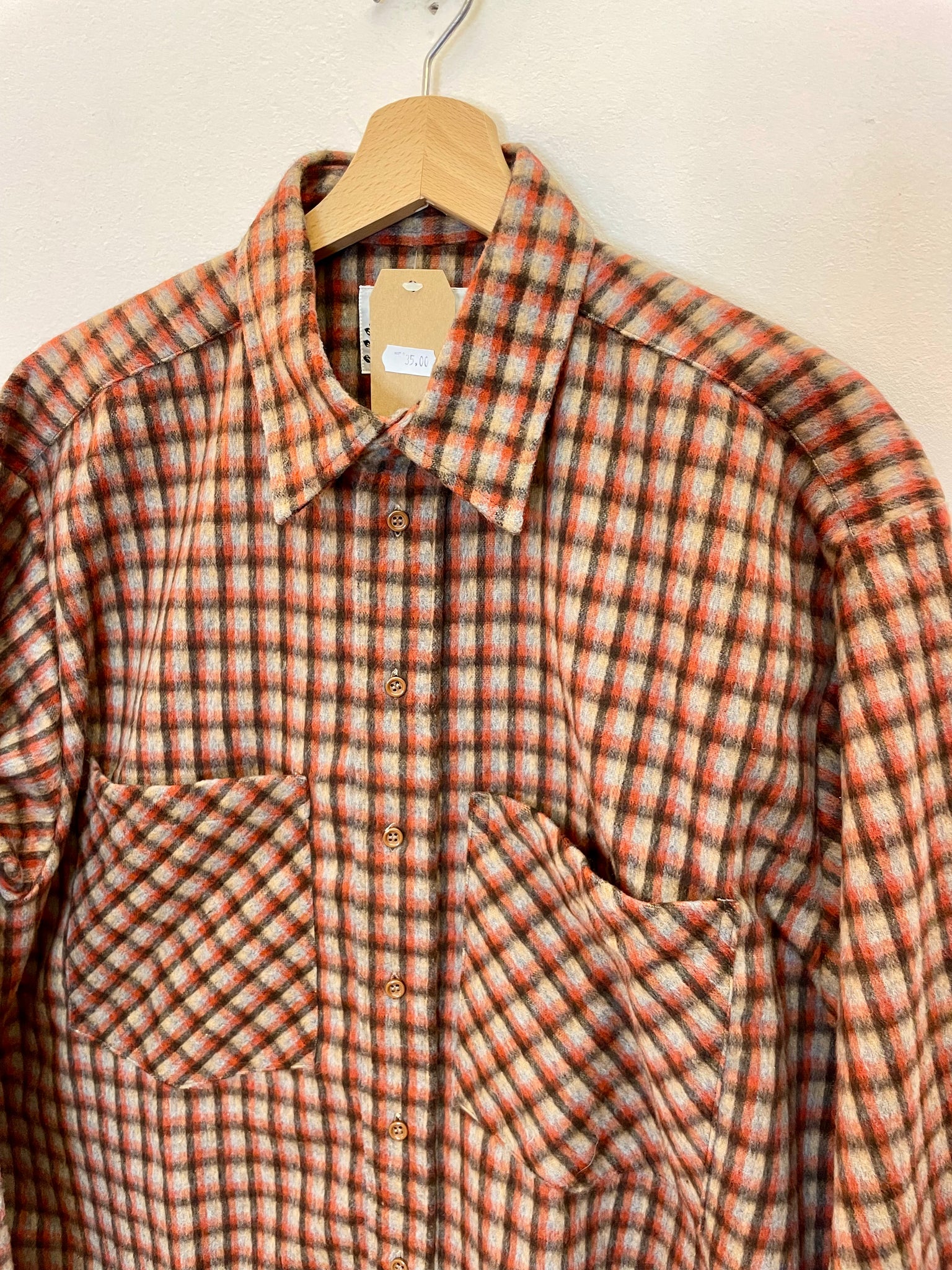 "Questa camicia vintage a quadri è realizzata in morbida lana mista, ideale per tenerti al caldo durante le fredde giornate invernali. La taglia L si adatta alla perfezione per un look vintage e alla moda. Aggiungi un tocco di stile retrò al tuo guardaroba con questa camicia."