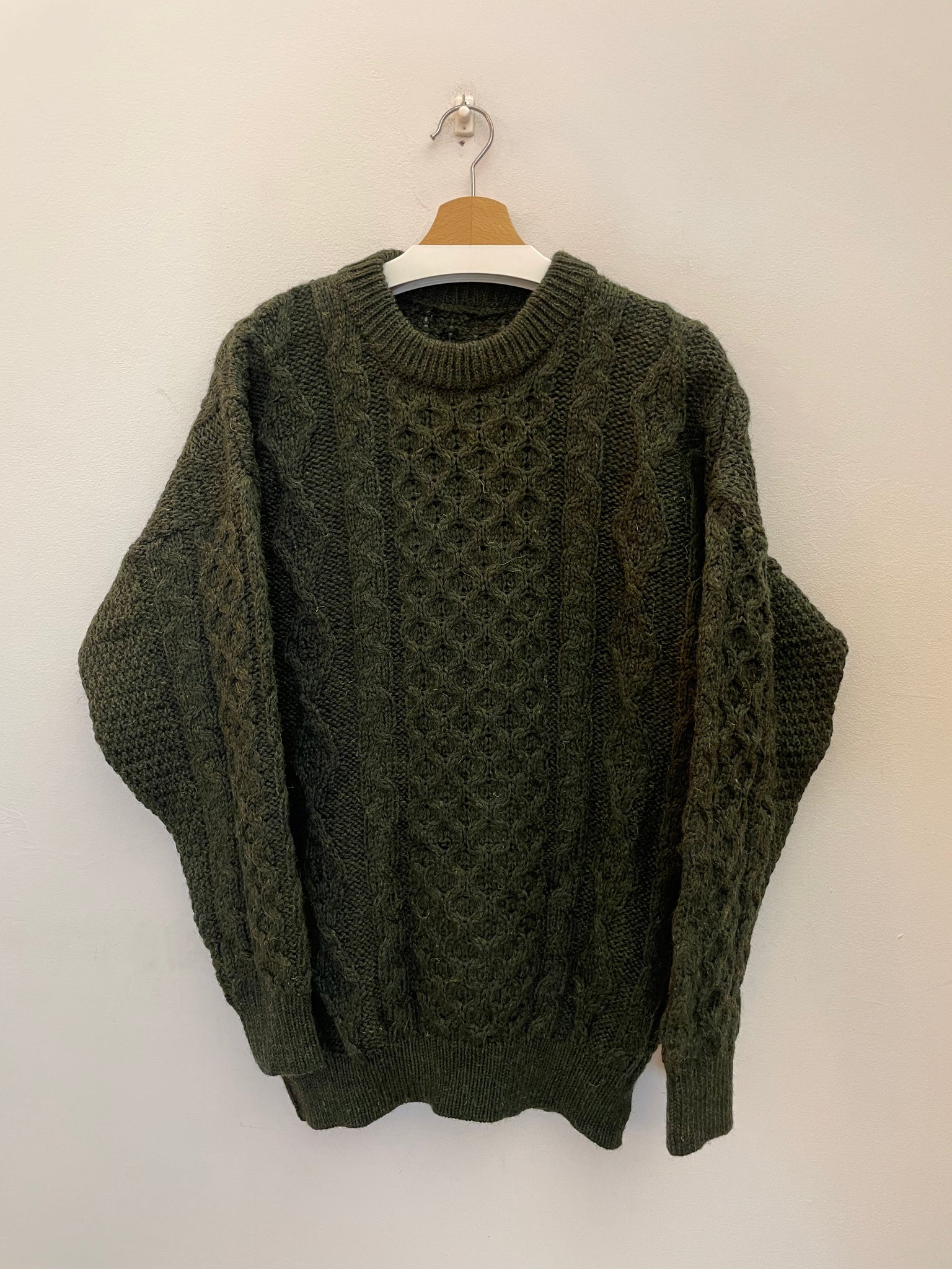 La tonalità verde profonda conferisce carattere e versatilità, permettendo abbinamenti sia casual che più strutturati. La texture ricca del cable knit aggiunge dimensione visiva e tattile, mentre la lana 100% garantisce traspirabilità naturale e durevolezza che attraversa le stagioni.