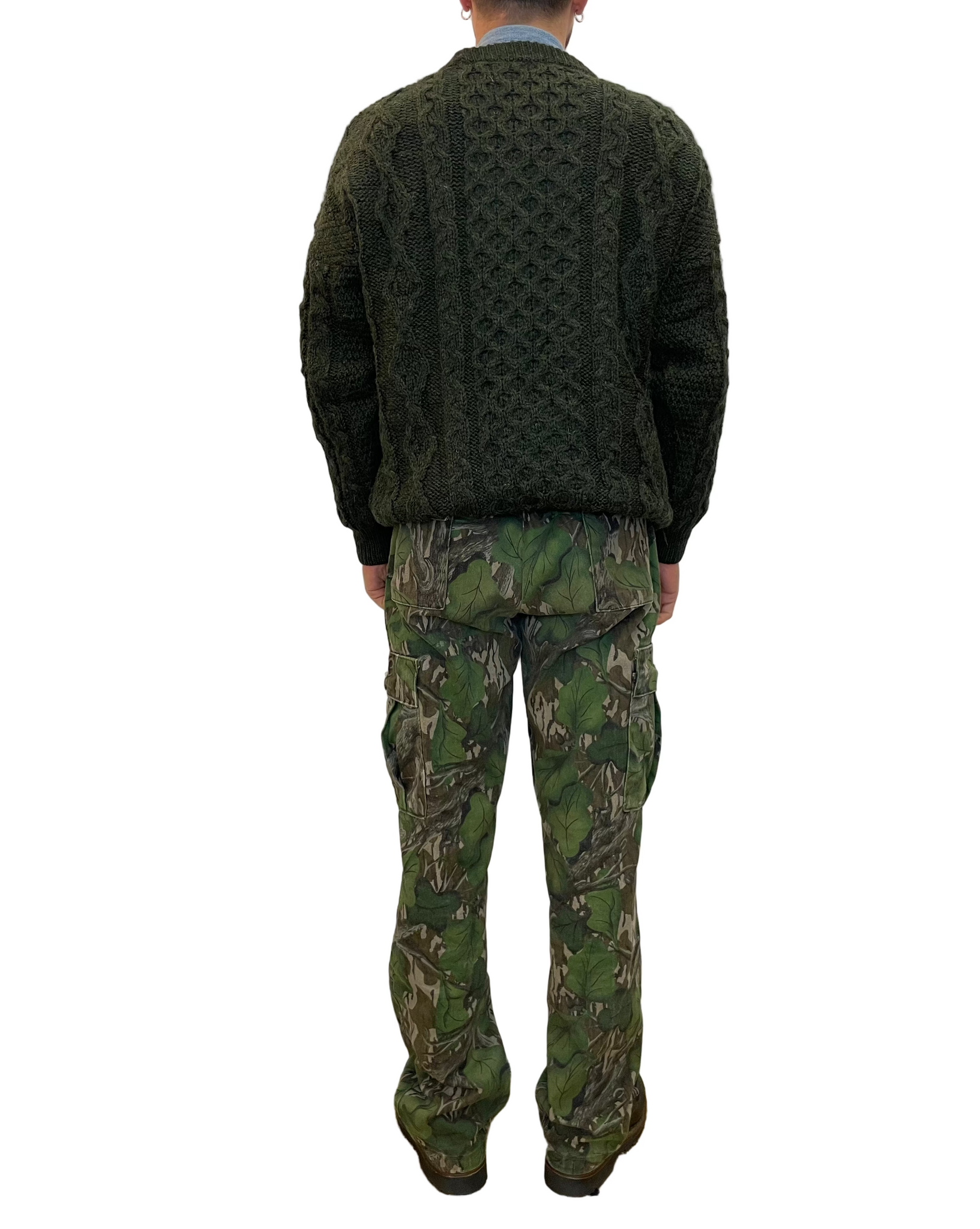 Questo maglione vintage in lana verde incarna la tradizione della lavorazione a trecce (cable knit), una tecnica artigianale che trasforma la lana pura in un capo scultoreo e funzionale. Le trecce intrecciate non sono solo un elemento estetico distintivo, ma creano anche tasche d'aria che aumentano l'isolamento termico, rendendo questo maglione eccezionalmente caldo senza appesantire.