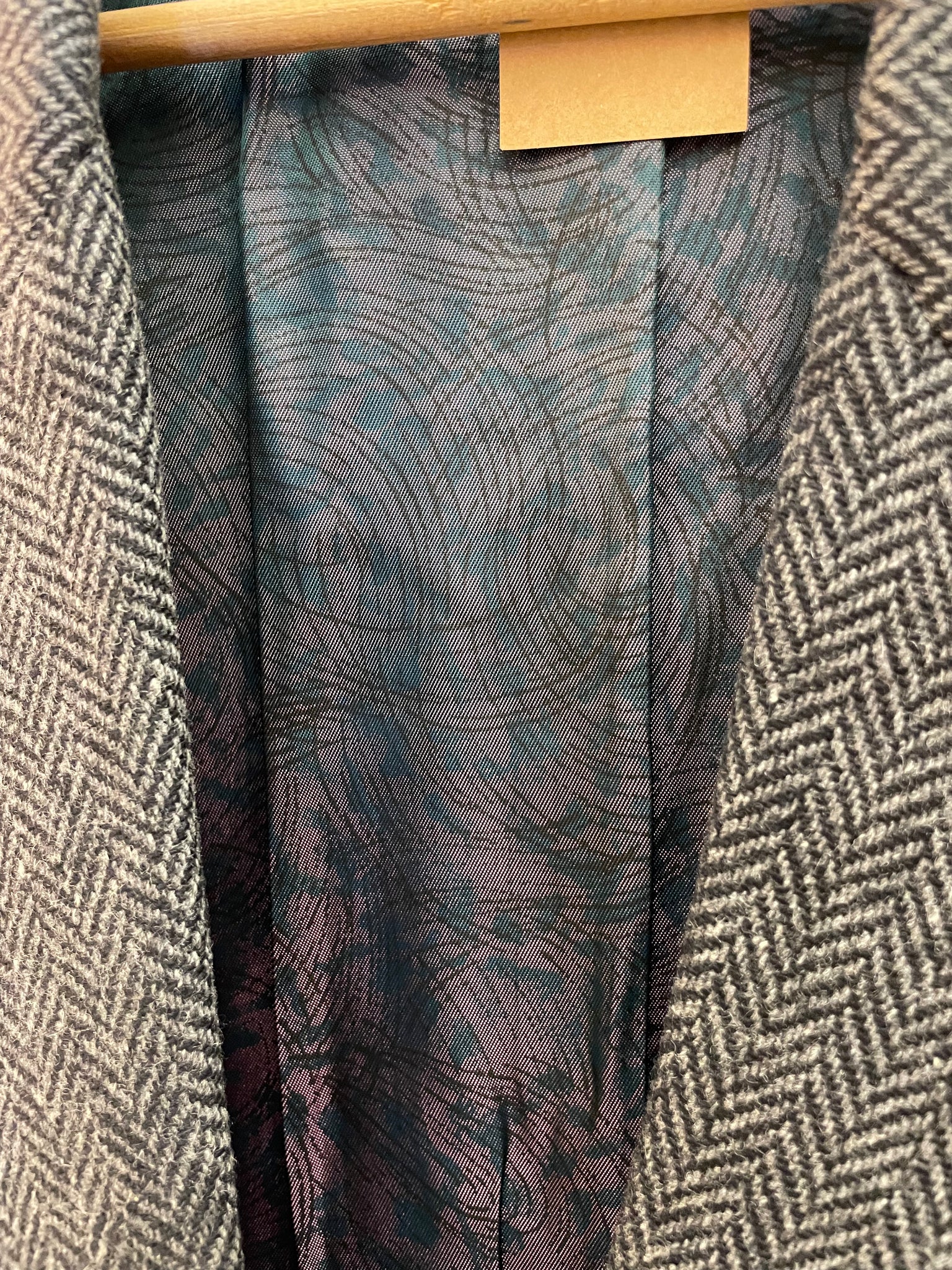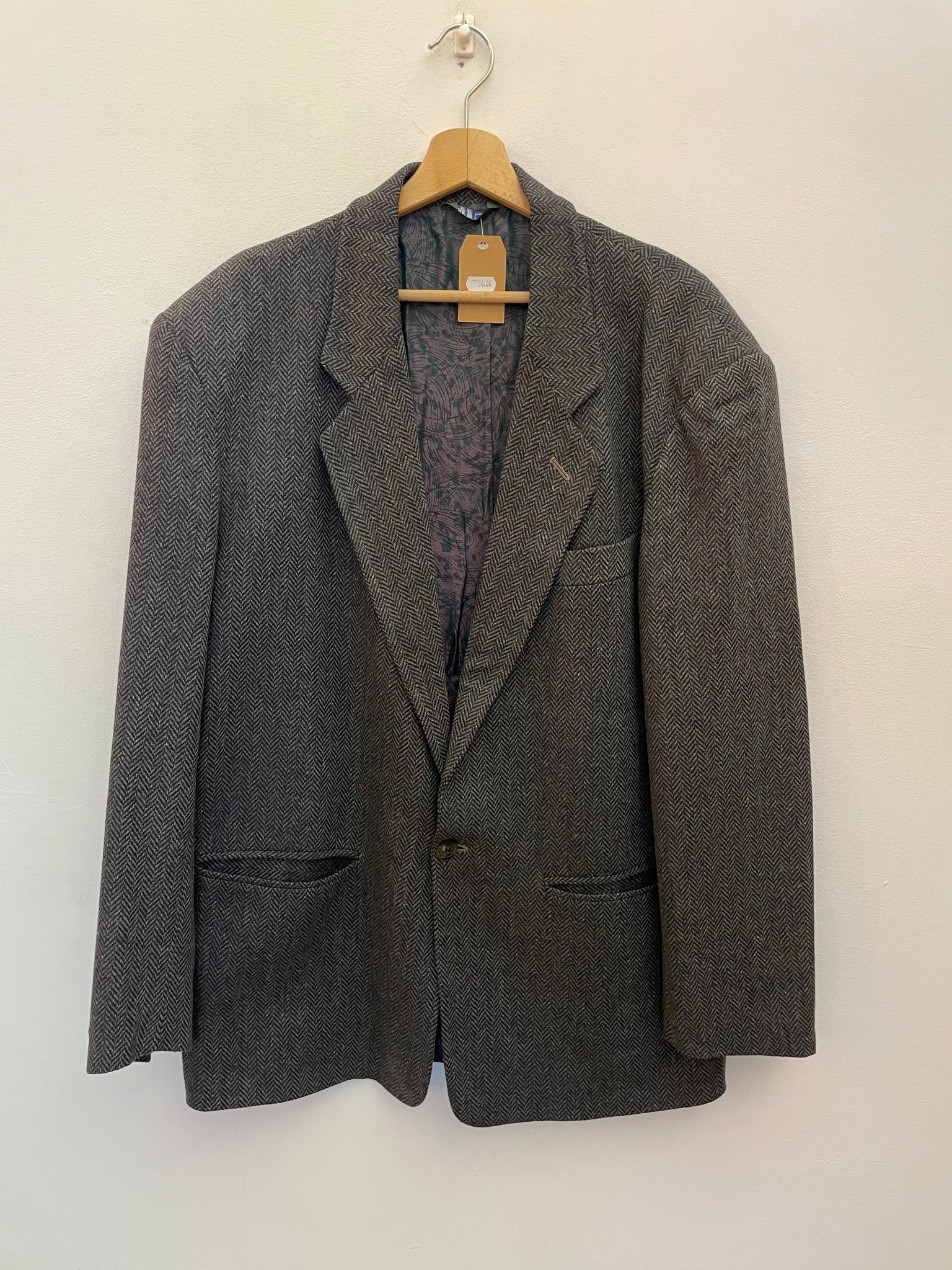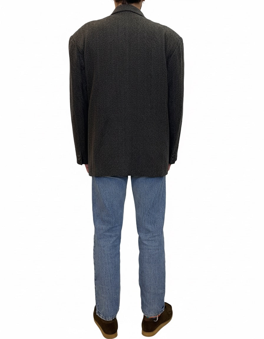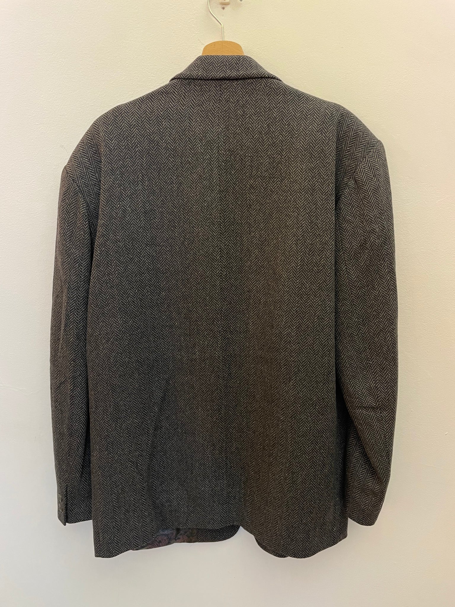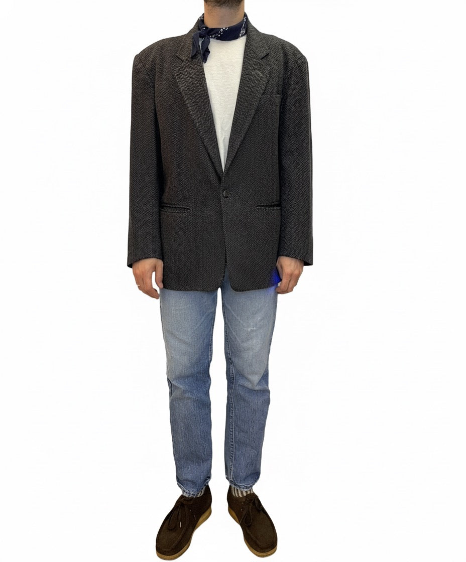 Questo blazer spinato vintage combina il meglio di due mondi: il pattern herringbone classico che definisce l'eleganza maschile e la lussuosa miscela di lana e cashmere che offre comfort superiore. Un capo che rappresenta l'apice della sartoria vintage, dove qualità dei materiali e design senza tempo si incontrano perfettamente.